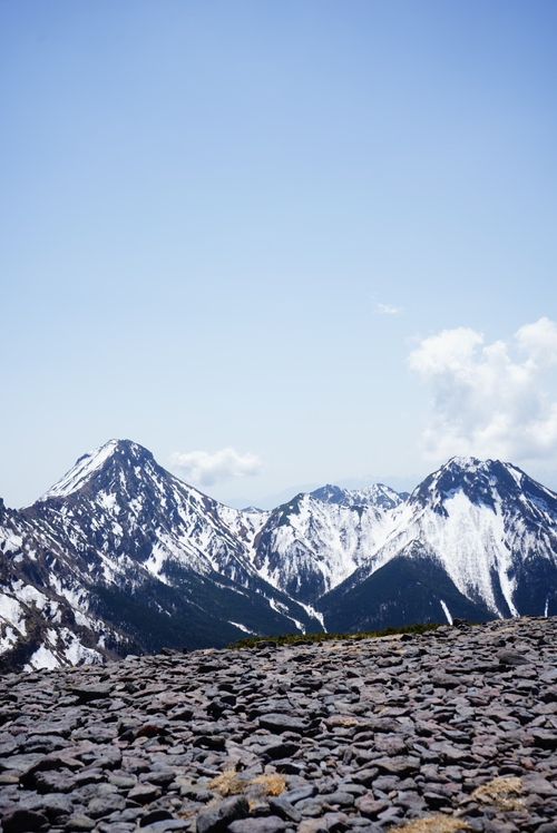 赤岩の頭から上の岩稜帯では、残雪と凍結が無く夏道と変わらないです。