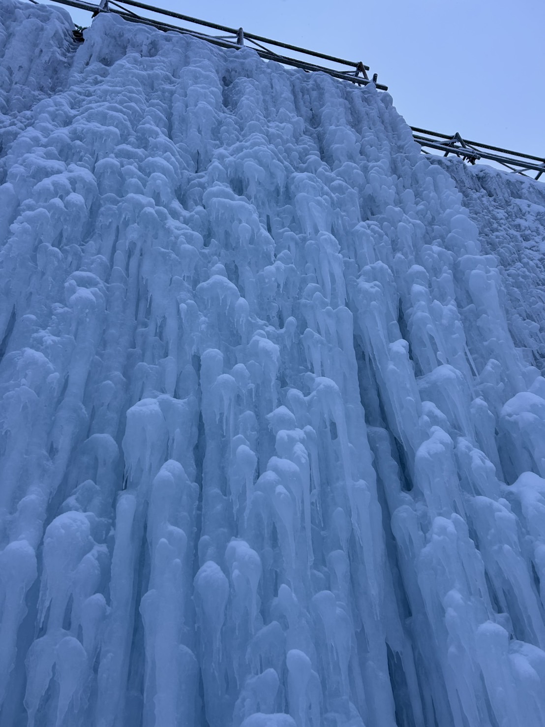 登攀する上で安全を確認していますが、氷が薄く脆い箇所や氷が乾燥して割れやすい箇所があるので十分にご注意ください。